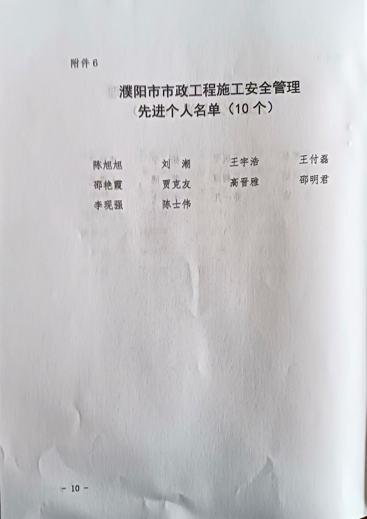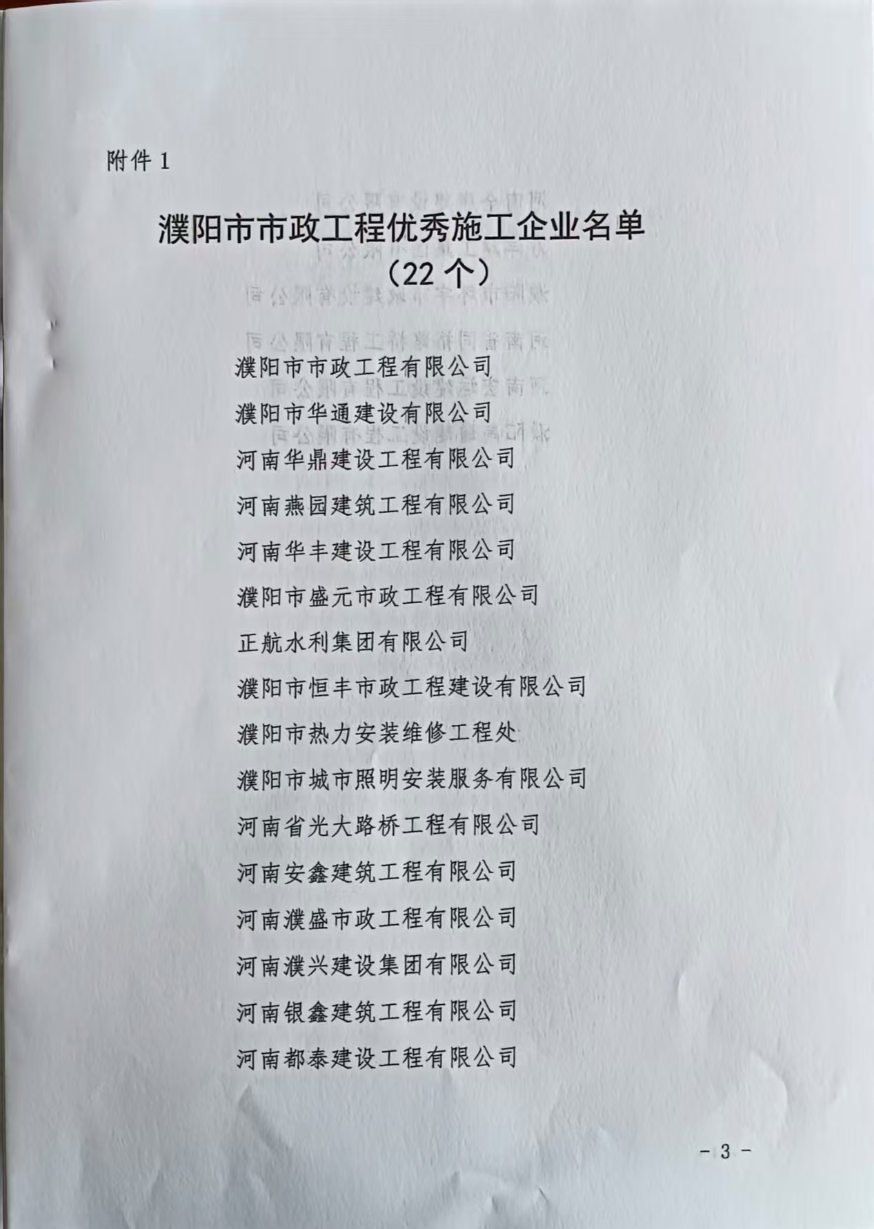关于表彰2024年度提升工程质量竞猜活动“优秀施工企业”等先进单位和个人的通报 濮市工协[2025]6号